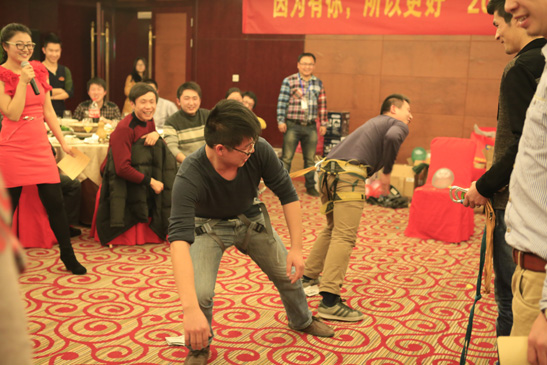 年會期間,公司各部門員工進(jìn)行了專業(yè)的拓展訓(xùn)練。全員被分成三小組來齊心協(xié)力的完成若干游戲任務(wù),輕松游戲的同時,密切了各部門員工間的關(guān)系,也讓員工體會到了強(qiáng)烈的團(tuán)隊氛圍。