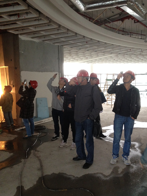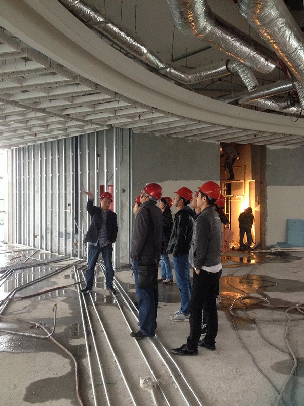 11月8日,公司組織我們招投標(biāo)中心若干人來到工地實地學(xué)習(xí),在工程部沈經(jīng)理、陳經(jīng)理的帶領(lǐng)下,我們參觀了整個工地現(xiàn)場。工地現(xiàn)場已經(jīng)如火如荼的全面展開基層工作,工人都在有條不紊的工作著,項目經(jīng)理一直在耐心、詳細(xì)的跟我們介紹吊頂、門套等各個工藝和流程,尤其介紹到此次工程的吊頂?shù)牟灰,這次這個隊伍就這個頂?shù)挠霉ぴ诙ㄎ环啪上花了很大功夫了,出一點錯,就得重放。
