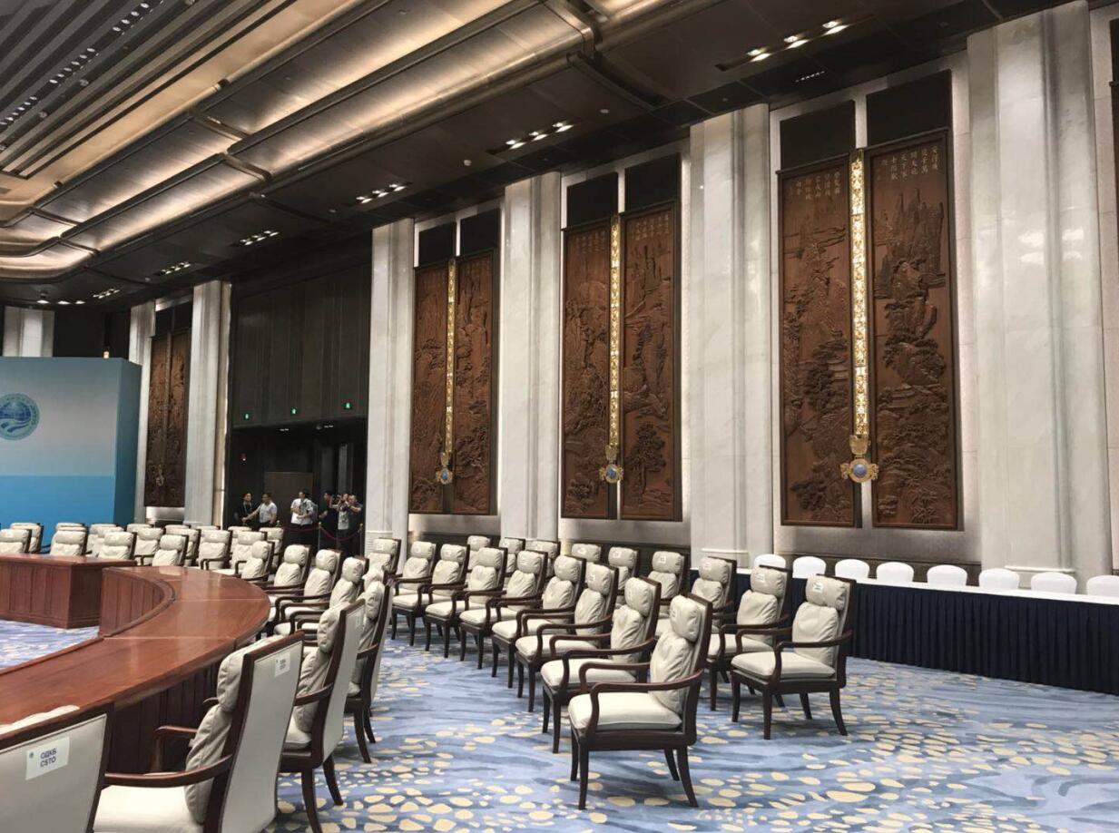 9月14日,在中裝協(xié)組織下觀摩了上合組織青島峰會的小青島接待中心、場館主會場、餐廳、宴會廳等重要項目。